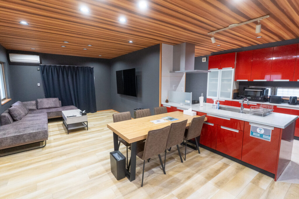 127㎡の広々とした平屋建て3LDKで、最大8名まで宿泊可能です。